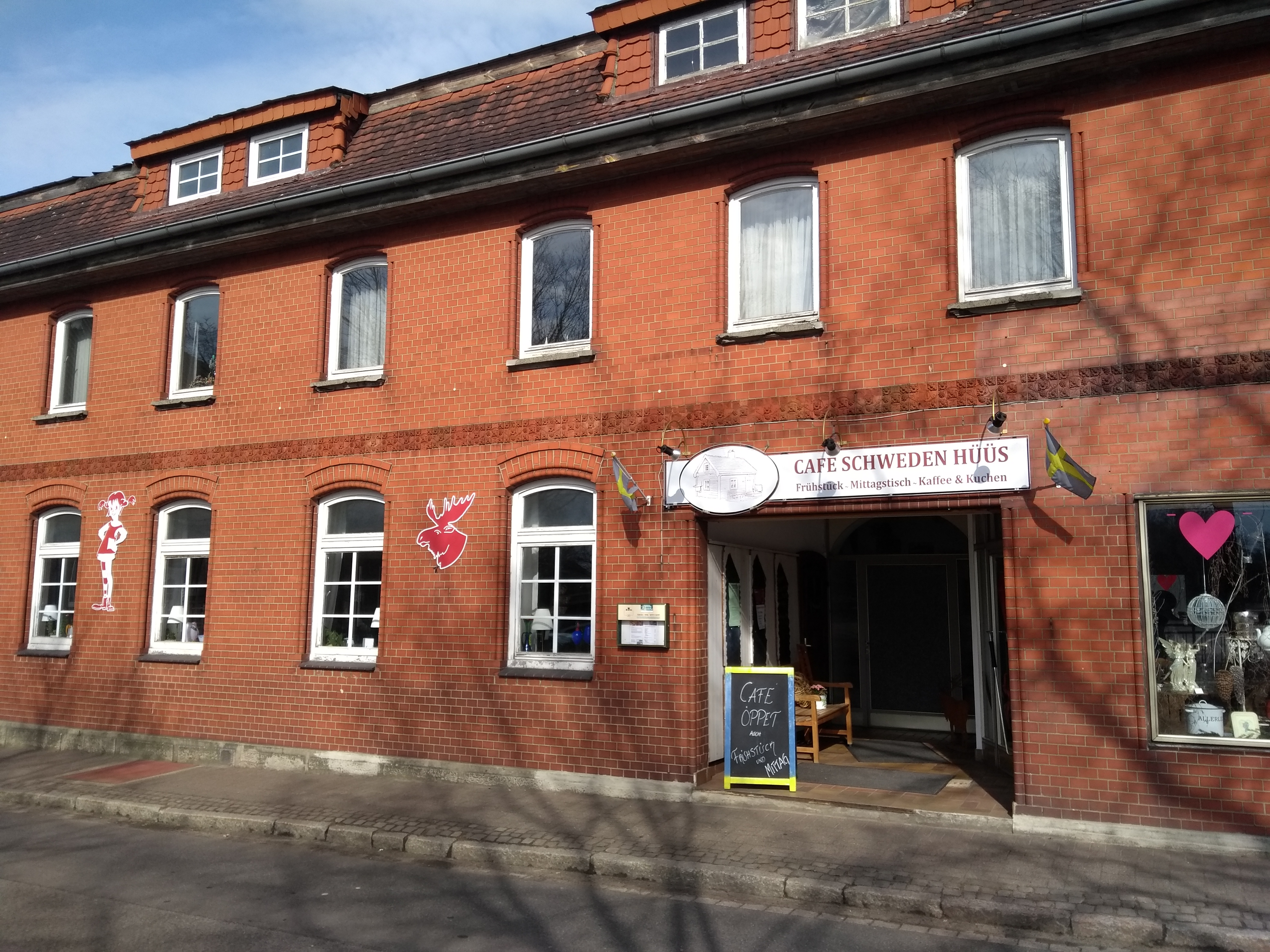 Das Café Schweden Hüüs ist geöffnet Dienstag bis Samstag 9 — 18 Uhr, Sonntag und an Feiertagen 10 — 18 Uhr, Montag Ruhetag