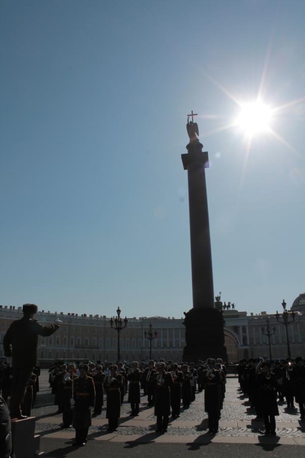 Übung der Militärkapelle vor dem Winterpalast