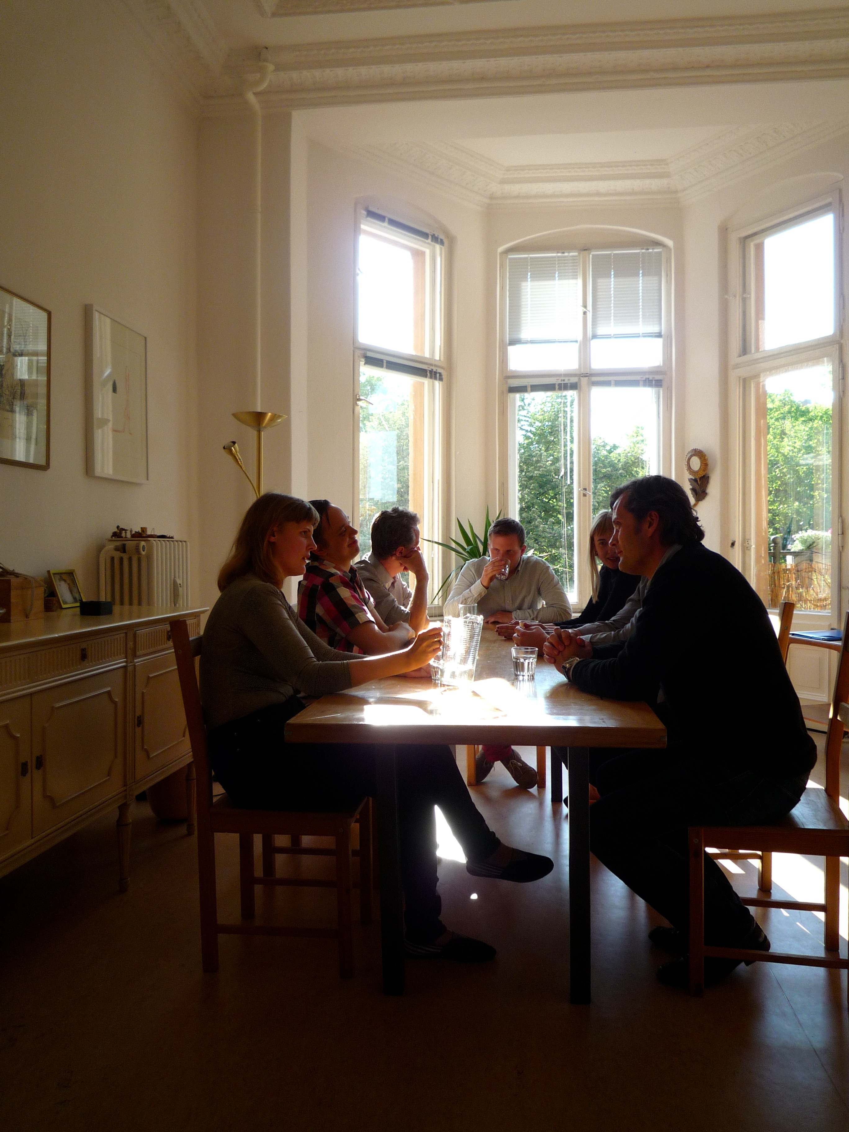 Wie angekündigt wurden wir dann von den Gastgebern in Empfang genommen und auf das kommende vorbereitet. Ein Sänger aus Stockholm, der zur Zeit in Berlin weilt, führte charmant durch die Inszenierung und die Wohnungen. Wir erhielten alle einen Stuhl mit dem wir dann von „Bühne“ zu „Bühne“ durch das Haus gingen.