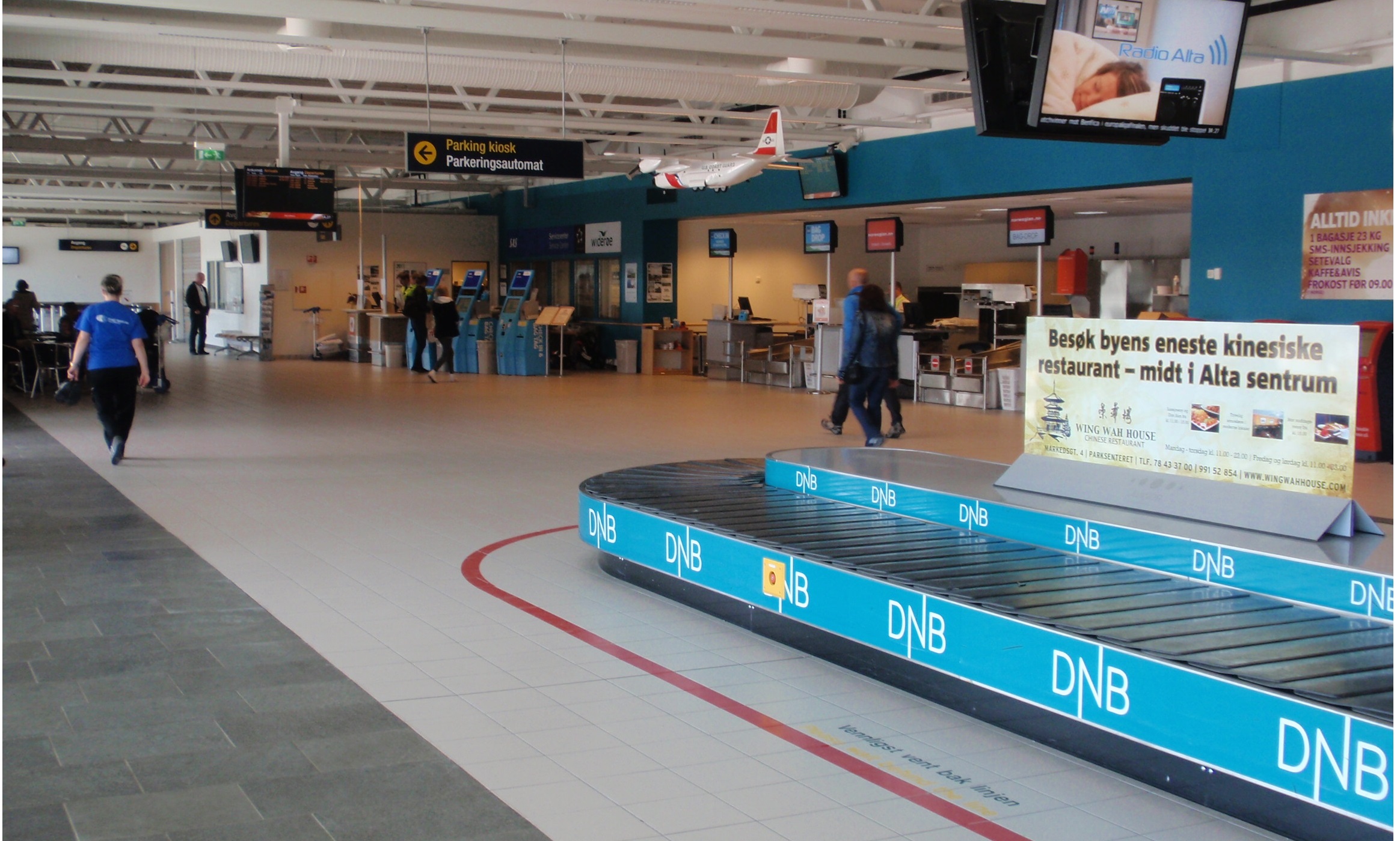 OLYMPUS DIGITAL CAMERA 17. Mai 2013 Schreibe einen Kommentar Abfertigungs- und Ankunftshalle in Alta: 4 Schalter, 1 Fließband, ein paar Norweger