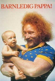 Zu sehen ist zum Beispiel ein Plakat aus den 1970ern, auf dem der schwedische Gewichtheber Lennart „Hoa Hoa“ Dahlgren für etwas warb, das in Deutschland 40 Jahre später immer noch nicht selbstverständlich ist: Dass Väter Elternzeit nehmen.